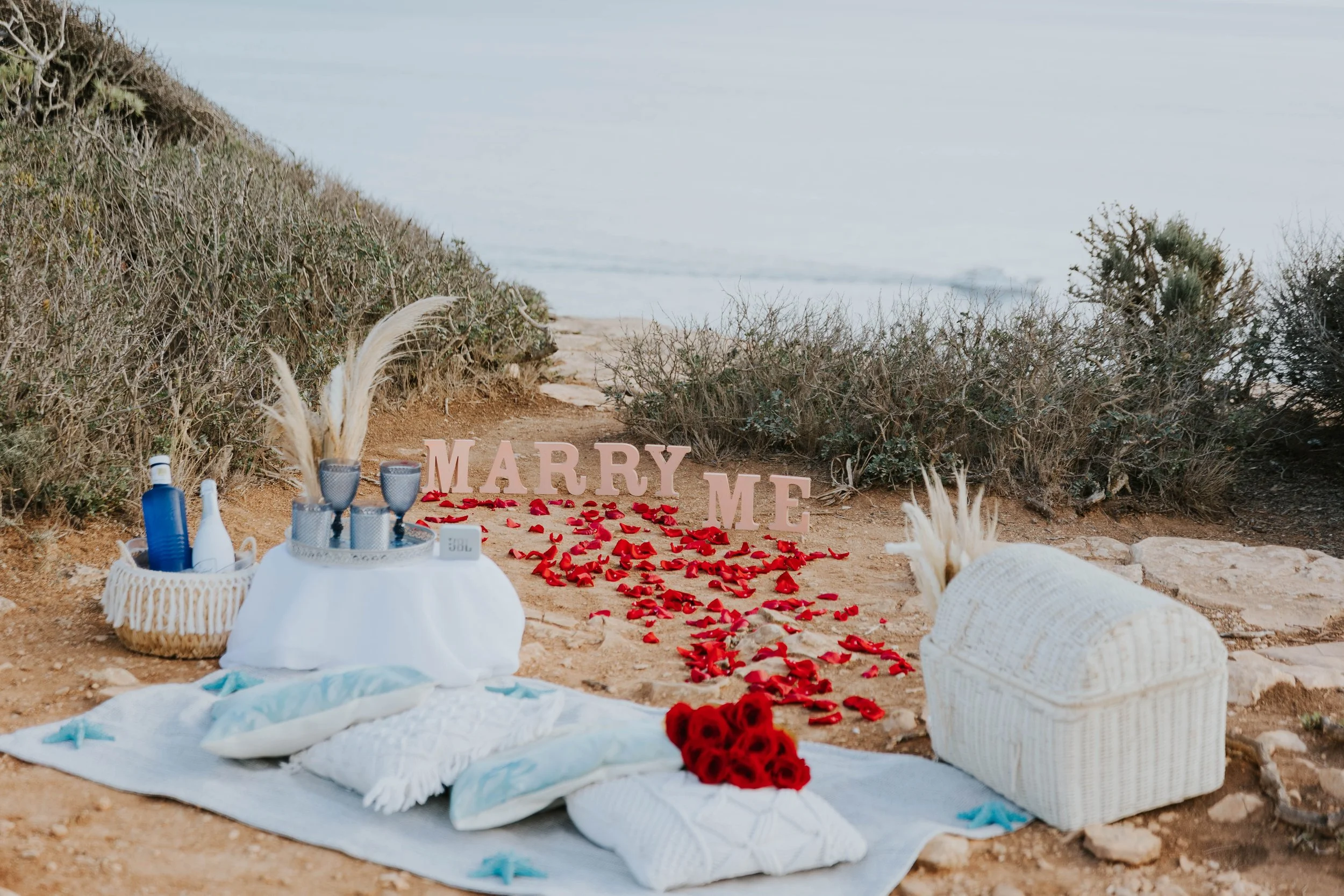 🌅 Stell dir vor: Die Sonne geht unter, eine warme Meeresbrise weht und dein Partner/deine Partnerin betritt ein atemberaubendes, luxuriöses Picknick-Arrangement, nur für euch beide. Umgeben von Rosenblättern und einer gekühlten Flasche Prosecco gehst du auf die Knie … und hörst die magischen Worte: